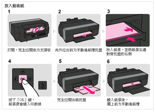 | 針對藝術紙進行改良的紙材處理設計 簡 全新且精密的前方進紙裝置及重新設計過後的進紙路徑讓藝術紙進紙變得更簡單方便。Epson工程師設計了前方進紙槽和後方支撐板,過去需要手動加裝導板並 由後方水平反向進紙的藝術紙,現在只要站在機身前方即可輕鬆置入紙張。這樣的設計除可減少列印操作的複雜麻煩,還能有效縮小印表機的使用空間。 |