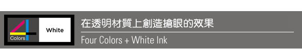 ![]() 讓商店櫥窗的廣告生龍活現!使用透明材質也能簡易的製作透明櫥窗用的廣告,有效的使用白色墨水能使圖形更加的明顯。 |