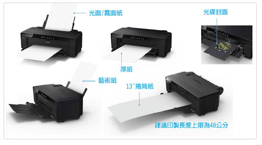 | 支援捲筒紙以及多種紙材輸出,讓SC-P407成為專業平面設計師以及攝影師不可或缺的利器。適用光面相紙、霧面紙、藝術紙、捲筒紙等各式紙材,最大紙材厚度可達1.3mm,可依使用者需求,選擇適合的紙材印製稿件,不會因為紙材長度侷限而只能屈就拼接列印,讓您的創意完整呈現。 |