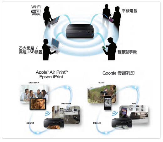 Notebook或PC驅動,即可直接列印照片及文件檔案;同時也支援iOS AirPrint以及Google雲端
