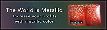 混合列印方式能夠印出獲得較自然的金屬色 堆疊列印的方式使用半透明的CMYK顏色覆蓋較深的金屬銀以獲得較生動的金屬色