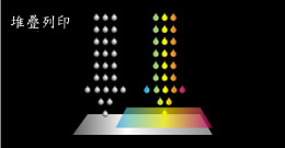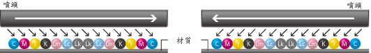 為了準確在所有列印速度的色彩重現,CMYKLmLcLkLkLcLmKYMC的排列方式在做雙向列印時,墨水堆疊的順序都會相同。